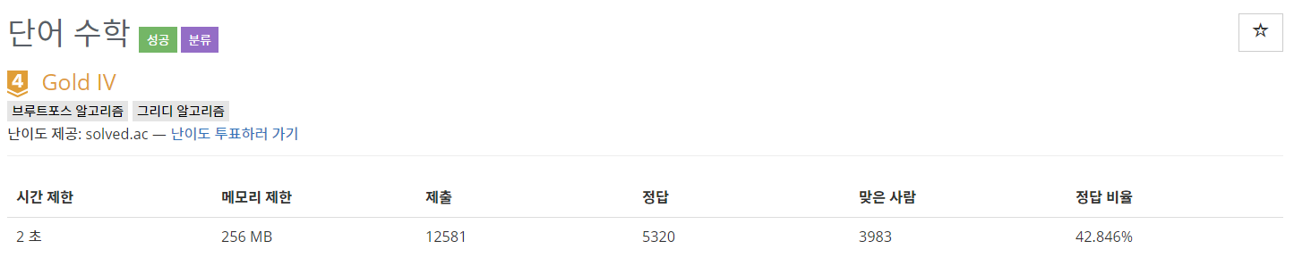 문제에서 모든 단어의 합이기 때문에 이를 숫자라 생각해보면 결국 문자열이 포함된 합으로 나타낼 수 있다.