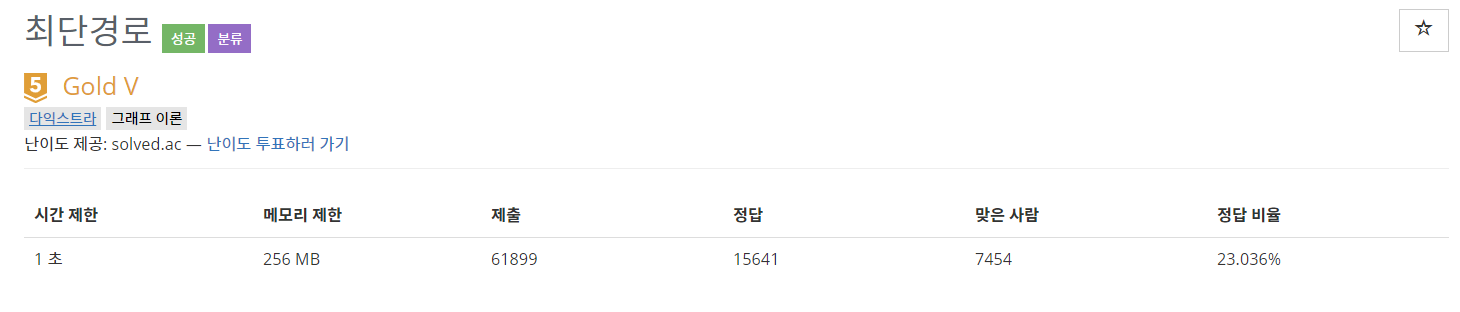 최단경로 문제는 시간 복잡도가 1초이고 정점의 개수가 20000개, 간선의 개수가 300000개 이므로