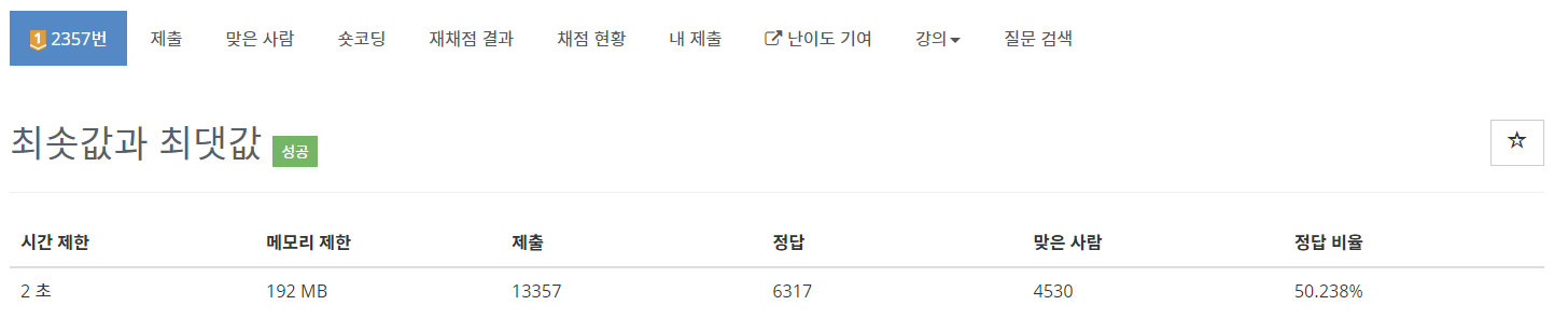 2357번: 최솟값과 최댓값