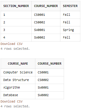SECTION 테이블의 Course_number는 COURSE 테이블의 Course_number의 FK이다.