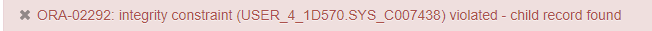 child record found, 즉 자식 테이블, 참조하고 있는 테이블이 있다는 것이다.