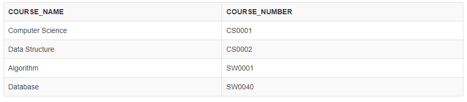 COURSE 테이블은 과목명과 과목 번호를 가지고 있고,