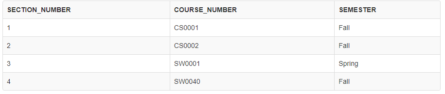 SECTION 테이블은 어떠한 과목이 어떤 학기에 열리는지를 담고 있다.