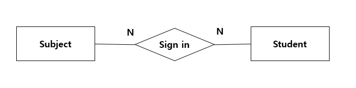 이때 Student와 Subject 두 Entity는 Sign in(참여)이라는 관계(Relation)를 가진다.