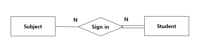 즉 Subject는 Sign in 관계에 참여하거나 안 해도 되고, Student는 반드시 참여해야 한다는 것이다.