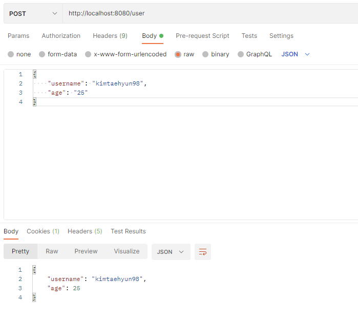 3번과 같은 방식으로 클라이어언트에서 전달 시에 사용하는 것이 바로 @RequestBody이다.