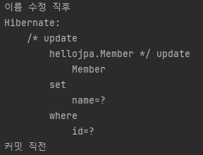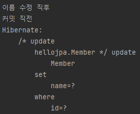 이렇게 변경이 확인되면 위에서 언급했던 "쓰기 지연 SQL 저장소"에 update 쿼리를 쌓아놓고 커밋 시 전부 보낸다.