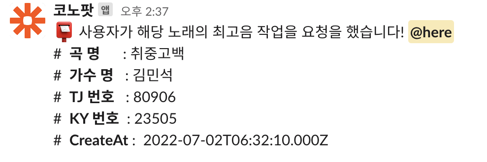 이렇게 어떠한 정보가 추가되면 추가되었다고 슬랙 메시지로 알려준다!