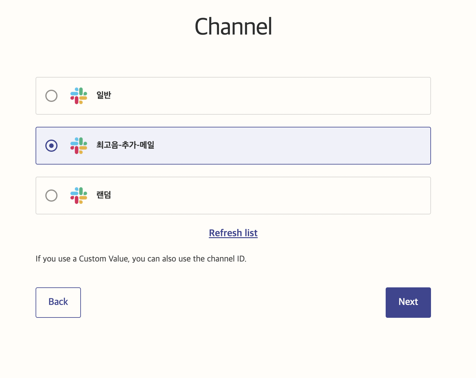 이제 슬랙의 어떤 field를 쓸건지 나온다.