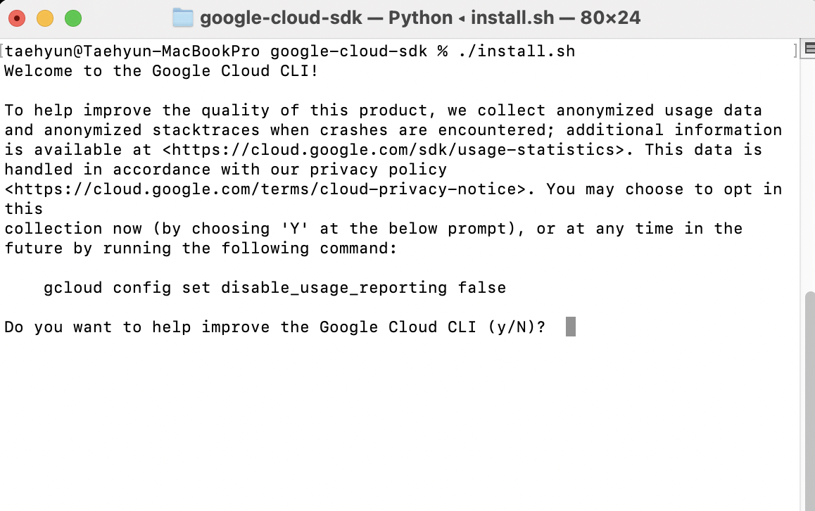 어쨌든 이 과정을 수행하려면 Google Cloud SDK가 있어야 한다.