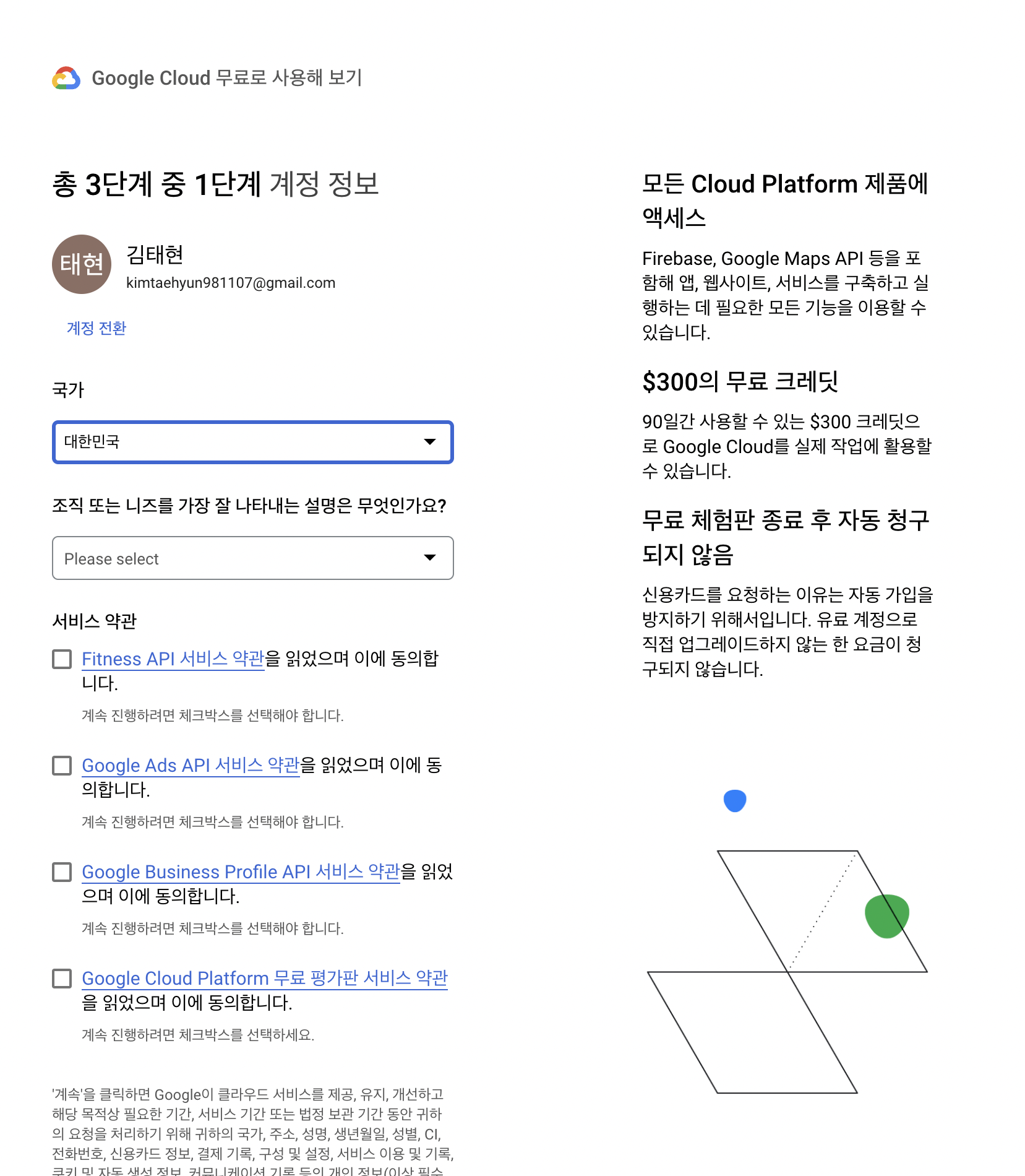 그전에 먼저 Google Cloud 계정이 있어야겠죠?