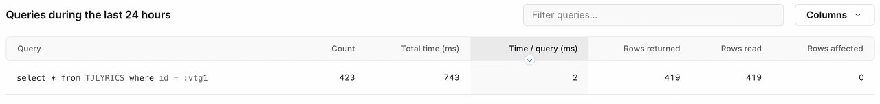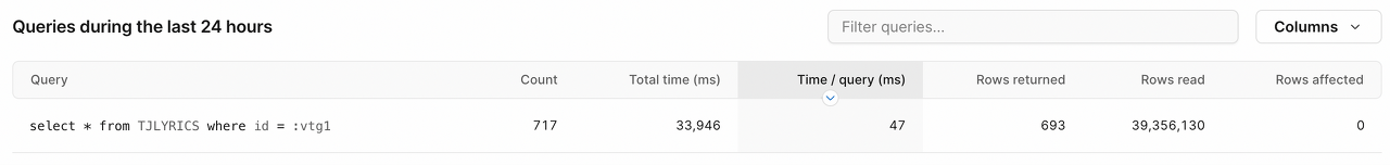 즉, 가사를 저장하고 있는 테이블이 주로 사용되고 있는데, 절대 저렇게 나올 수가 없다고 생각했다.
