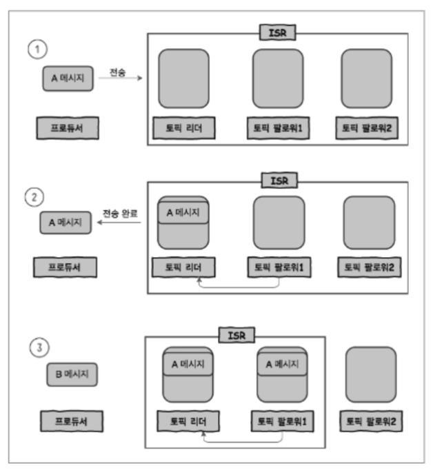 이때 토픽은 하나의 리더를 가지고 나머지 리플리케이션은 전부 팔로워의 역할을 한다.