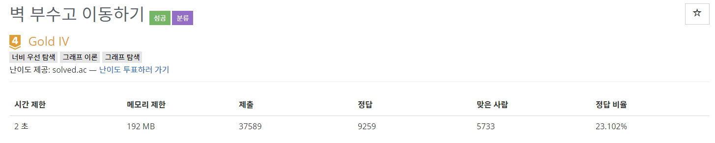 벽 부수기 2도 똑같은 유형이다. 코드를 조금만 바꾸면된다.