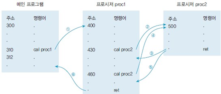 이것이 바로 프로시저의 호출과 복귀 과정이다.