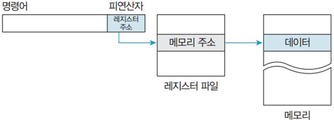 명령어 피연산자 필드가 가리키는 레지스터의 내용을 유효 주소로 사용
