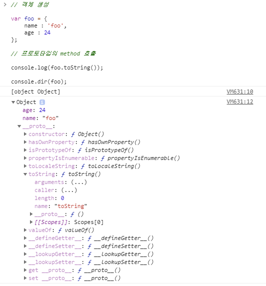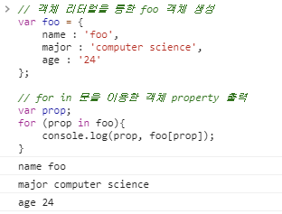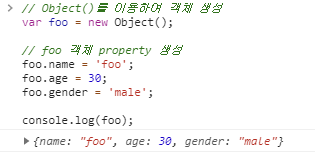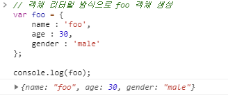 내가 foo 란 객체를 생성했고, 프로퍼티 두 개를 만들었다.