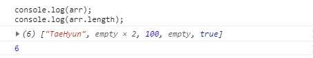 위 사진을 보고 알 수 있듯이 legth는 최대 길이, 즉 배열의 가장 큰 index를 기준으로 출력되는 것을 알 수 있다.