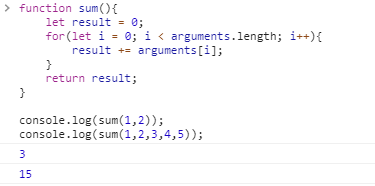 이렇게 JS에서 호출된 인자의 개수를 확인하고 이에 따라 동작을 다르게 해주는 것을 가능하게 하는 것이 argumentㄴ 객체이다.
