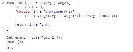 이때 console.log((arg1+arg2)/innerArg+local))이란 코드를 실행하게 될 텐데, 우리가 준 인자는 2, 즉 innerArg 하나뿐이다.