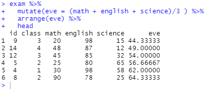 이렇게 dplyr 패키지의 함수를 조합하여 사용도 가능하다.