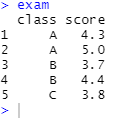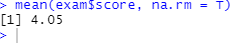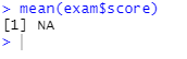 원래의 exam$score 변수에는 결측치가 들어있었기 때문에 비정상적인 출력을 한다.