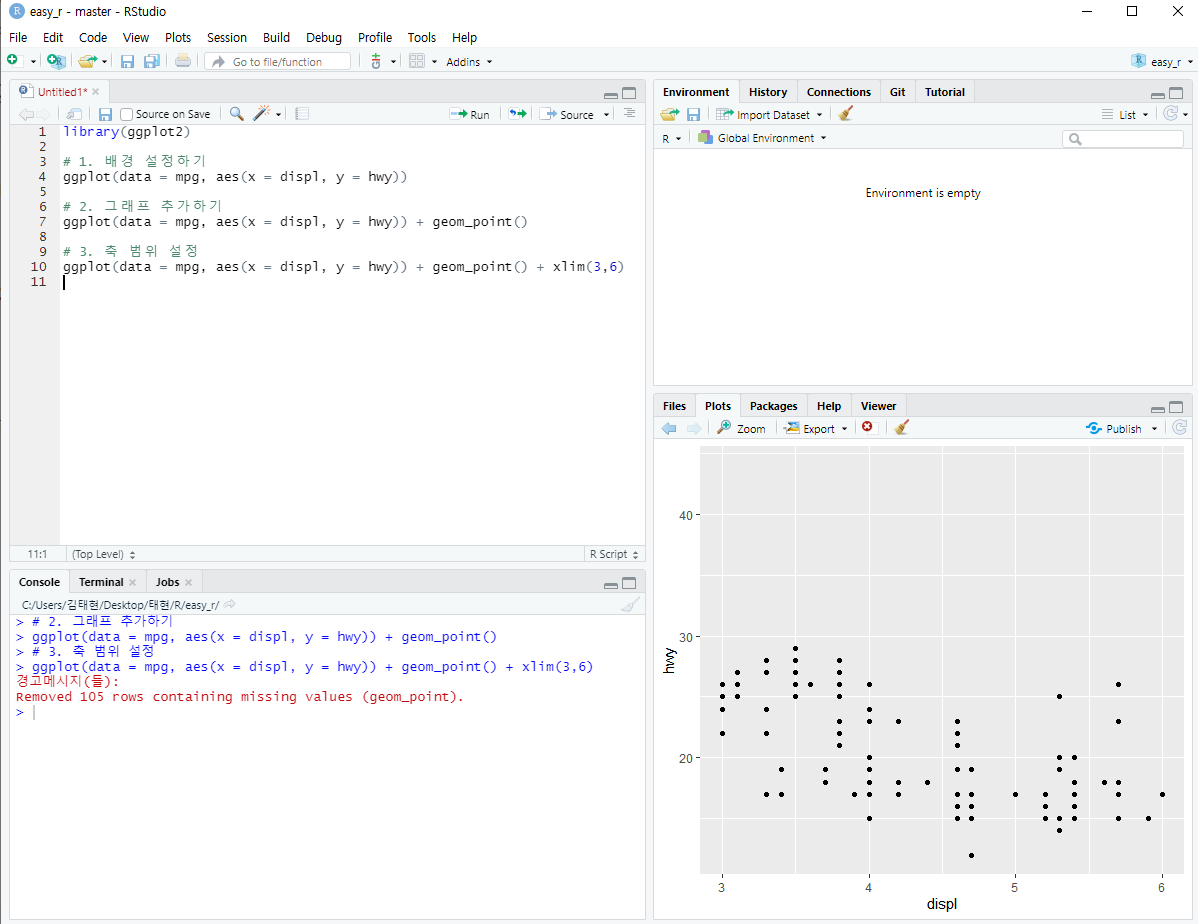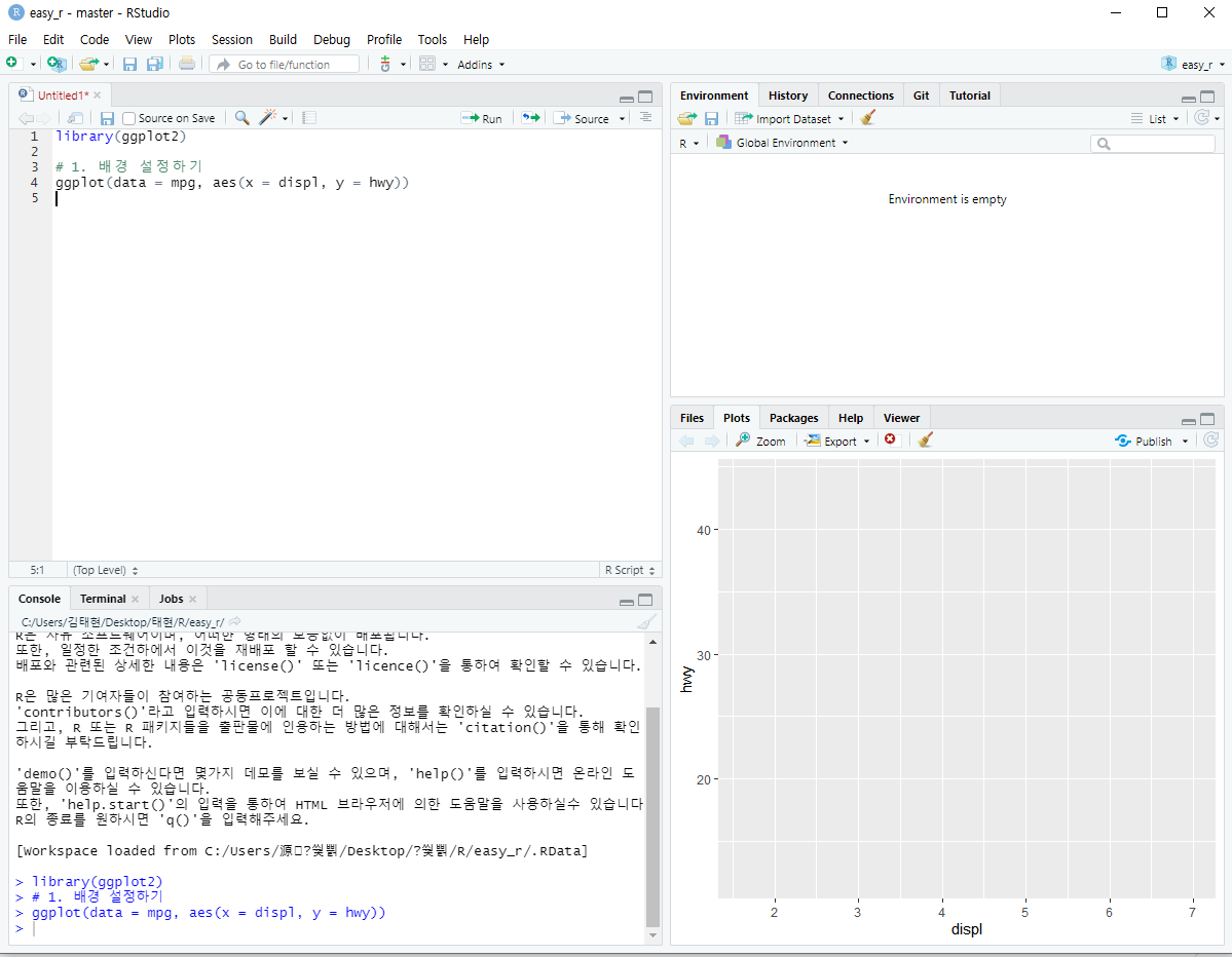 설명이 조금 부실할 수 있지만 막상 직접 해보다 보면 너무 간단하고 좋아서 다시 한번 R의 매력에 빠지게 되는 것 같다.