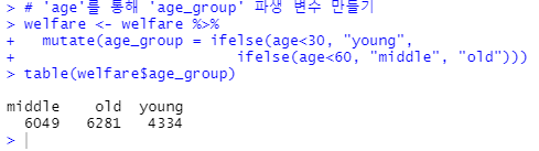 어제 birth 변수를 사용해 새로운 파생 변수 age를 생성했다.