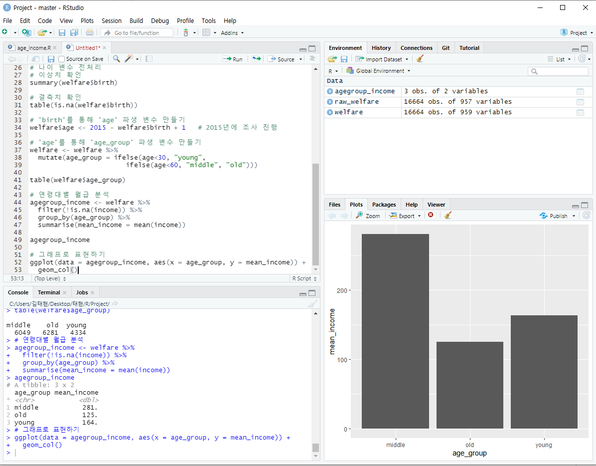 이제 연령대 변수를 생성했으니 월급 변수를 생성해보자.