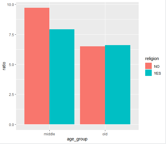 ggplot(data = df_divorce, aes(x=age_group, y=ratio, fill=religion)) +