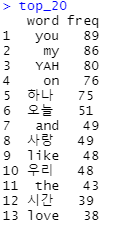 음.. 생각보다 사랑, love가 많지가 않네? 랩이랑 힙합이라 그런가