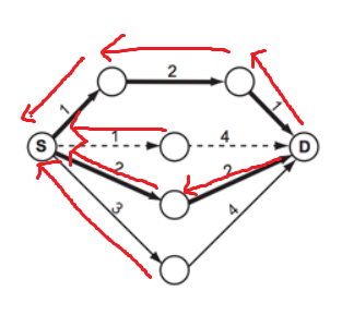 당연히 시작점을 처음에 큐에 넣고 돌릴 것이고, 그렇게 되면 위에 표시된 빨간색 간선들이 모두 지워질 것이다.