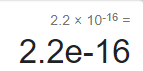 여기서 2.2e-16은 풀어써보면 2.2 * 10^-16이란 말이다.