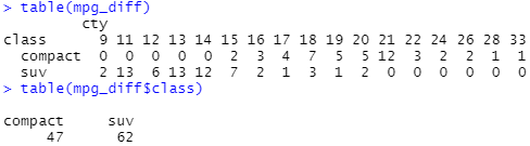 mpg_diff2 <- mpg %>% # mpg데이터 중
